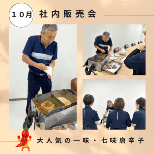 【10月の社内販売会】 2025年10月15日 お知らせブログ 朝晩の気温が下がり始め、「冷え」を感じる日が増えてきましたね🍂 本日、大人気の「一味・七味唐辛子」販売会がありました🌶 目の前で自分好みに調合してもらえる、世界に一つのオリジナル七味が今回も大好評! さらに、料理に便利な「粉生姜」も販売しました🙌 これらのスパイスは、辛味成分や香り成分が体を温めて血液の循環を良くしてくれる、まさに「温活」に最適なアイテム! 本格的な冬が来る前に、体の内側からポカポカ準備を始めましょう🔥