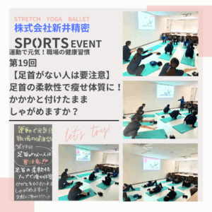 イベントでは、美筋ヨガチャンネル様の動画を参考に、足首を柔らかくする方法を実践しました!