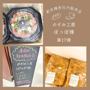 2026年、最初の社内販売会を開催しました!🎍✨ 2026年1月14日 お知らせブログ 本日は「のぞみ工房 ぽっぽ」様にお越しいただき、大人気のパンやラスク、そしてボリューム満点のお惣菜を販売していただきました。 今回のお惣菜ラインナップは… 🥢 じっくり煮込んだ具沢山「もつ煮」 🥩 パーティーサイズの豪華「ローストビーフ」 🍗 みんな大好き「唐揚げ」 特に「もつ煮」は大人気で、飛ぶように売れていきました! 寒い季節に温かいお惣菜は嬉しいですね。 ぽっぽ様、本日も美味しい幸せをありがとうございました😊