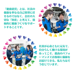 私たちが日々、精密な仕事に集中できるのは、会社が私たちの「心」と「体」を一番に考えて、守ってくれているからです。